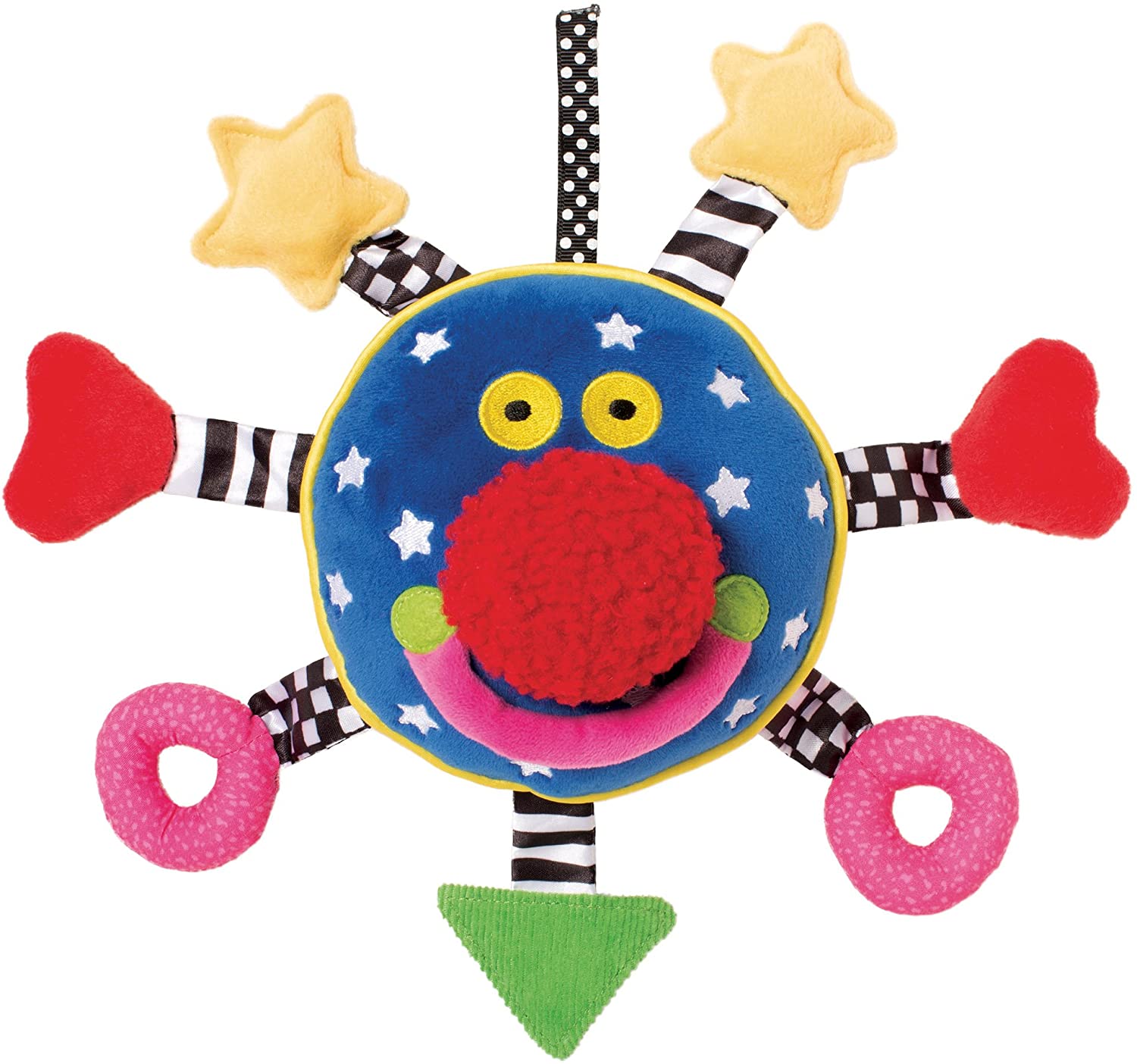 The Baby Whoozit is full of whimsy and delight but also encourages fundamental learning on so many levels. The six-inch round body of Baby Whoozit is pillow-like and is made of ultra-soft and lush cotton velour fabric. The soft material makes it so easy for babies to cuddle with which provides a unique tactile experience. Each of the Baby Whoozit arms, seven in all, feature hidden noisemakers which provides auditory stimulation for babies. The hidden noisemakers include crinkle paper, squeakers, and rattles.