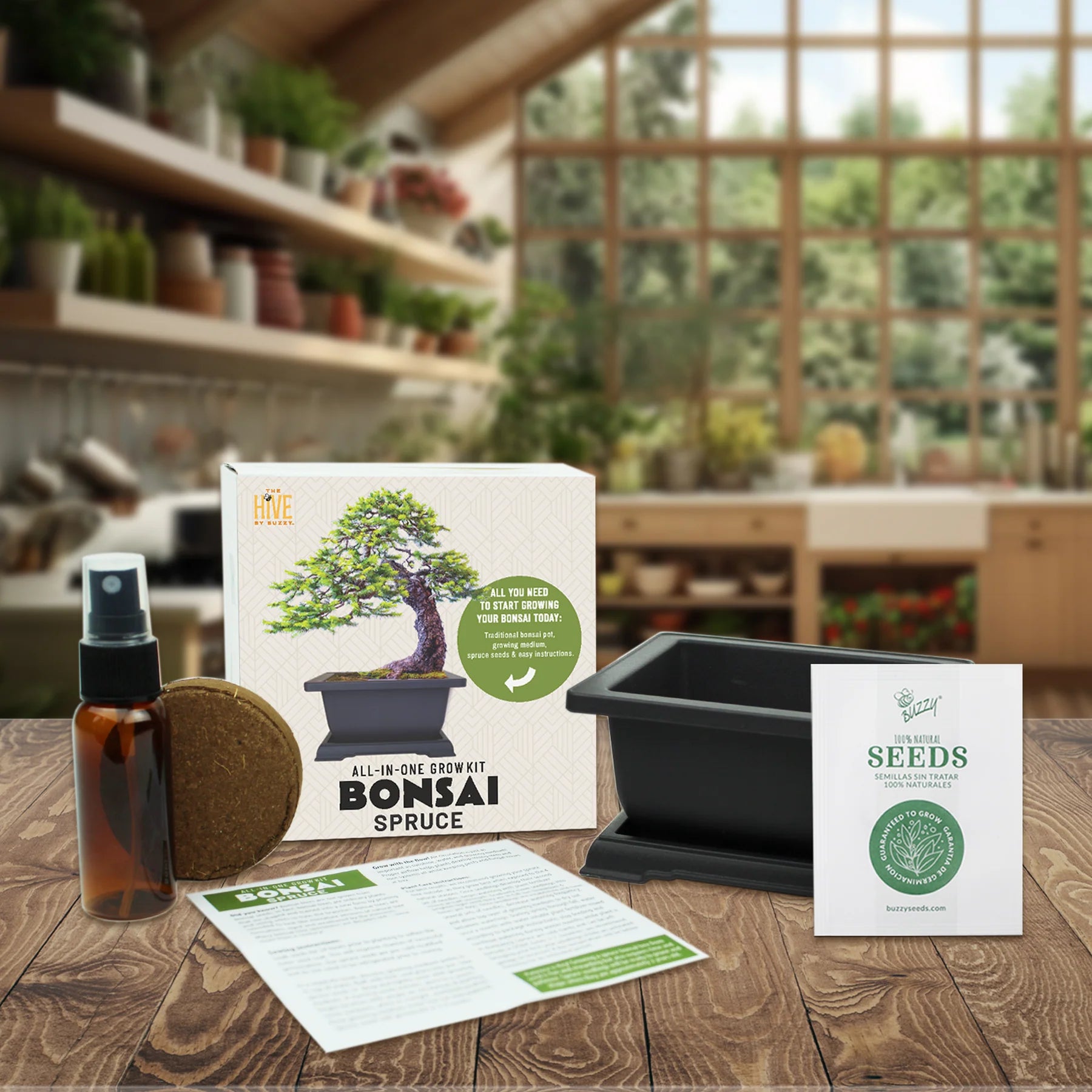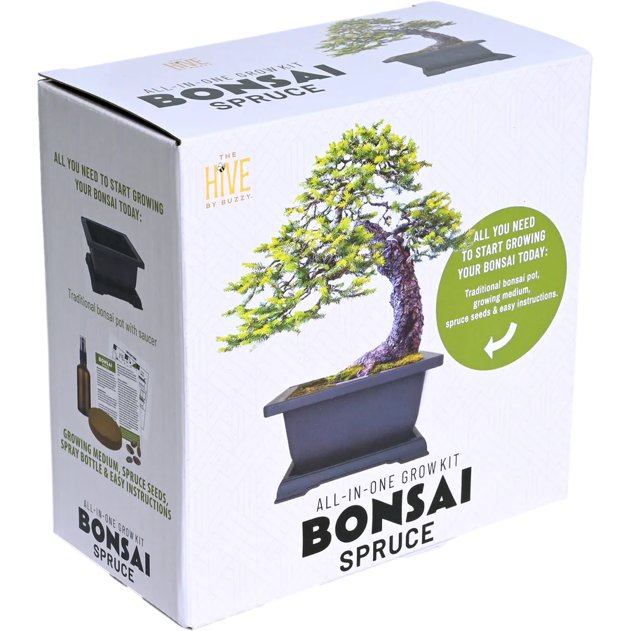 Inside, you’ll find everything you need to get started: a traditional-style bonsai pot with a matching tray, spruce seeds, a water spray bottle, and easy-to-follow instructions. Just add water, sunshine, and a little patience—no green thumb required!