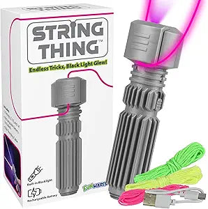 FUN AND ENTERTAINMENT FOR ALL AGES: Enjoy endless hours of fun with captivating tricks and glowing effects with a built-in recharable battery. Perfect for kids and adults alike, this toy is designed to entertain everyone. Great for showing off at parties or just practicing your skills, it’s a cool kids gadget that everyone will want to try. Whether you're into zip tricks or just looking for cool weird toys, String Thing delivers.